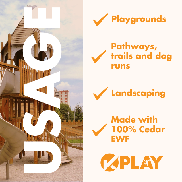Our Cedar Playchips are Engineered Wood Fibre (EWF) that are used for playgrounds, landscaping and pathways. The perfect choice for a natural, sustainable and safe play surface, our IPEMA Certified Playground Chips ensure you are creating safe and inviting spaces. The benefits of cedar are its natural sweet scent and colour variation. Its bright color also helps to reflect the sun and keep a cool surface for playground all year round. Our cedar chips are 100% cedar engineered wood fibre and is our most popular choice throughout Western USA and China.