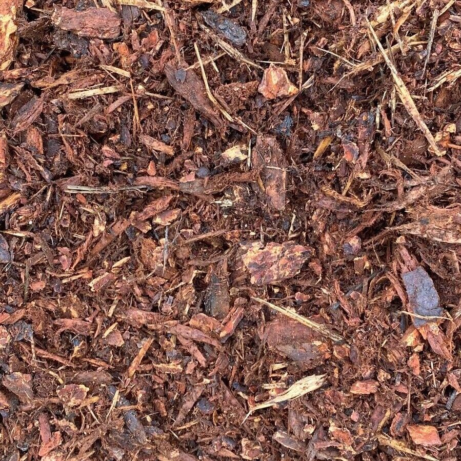 A Fir Bark Mulch that has been screened to 3/4″, all the mulch without the larger pieces. We recommend a 3-4 inch layer for new gardens and 1-2 inches for top dressing existing bark mulch applications.