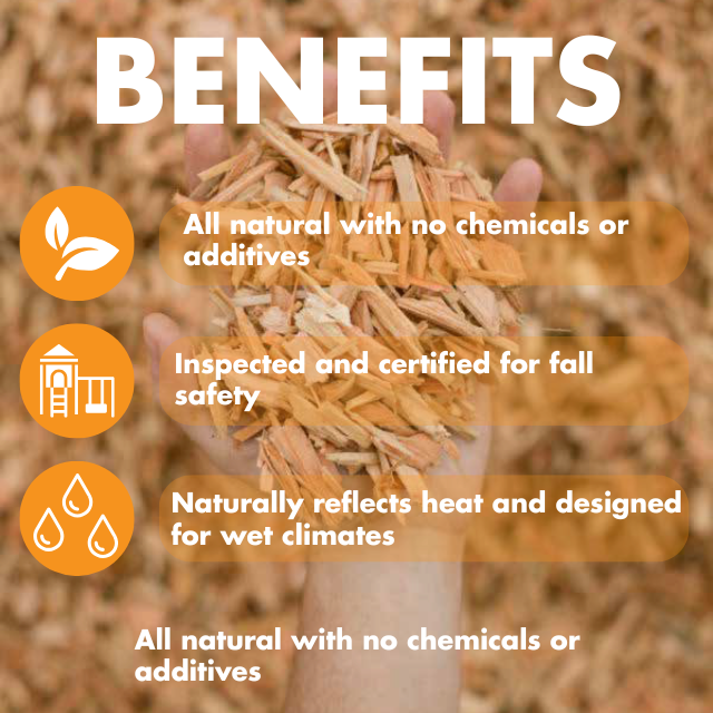 Our Whitewood Playground Chips are Engineered Wood Fibre (EWF) that are used for playgrounds, landscaping and pathways. The perfect choice for a natural, sustainable and safe play surface, our IPEMA Certified Playground Chips ensure you are creating safe and inviting spaces. The benefits of whitewood are its natural white coloration and subtle scent. Its bright color also helps to reflect the sun and keep a cool surface for playground all year round. Our whitewood chips are 100% spruce, pine and fir engineered wood fibre and is our most popular choice throughout British Columbia.